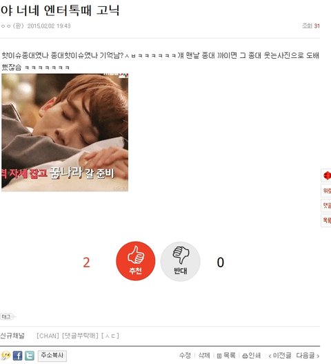 야 나 저기 엔터톡 고닉 글쓴앤데