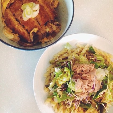 한창 가츠돈과 샐러드 파스타에 꽂혀서 친구들에게 자주 해준 요리에요.