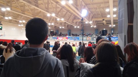 보조경기장에서 주경기장으로 이동하는 길에 민석이 봤거든..
