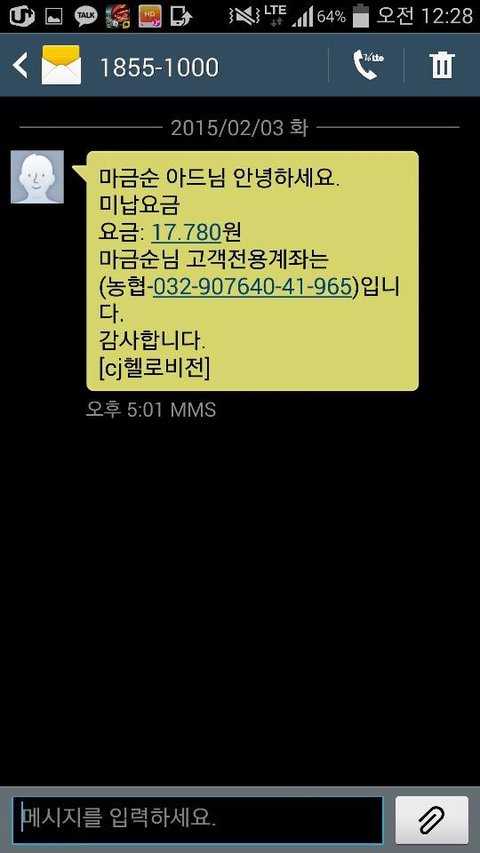 아그리고 빠져먹은 내용이 있는데 저희엄마랑 통화하고도 끊고 바로 문자가 왔답니다..요금내라는 문자 그리고 저한테도 그런식으로 왔습니다..이건 고객을 완전 무시하고 더 열받으라고 하는 행동아닙니까? 돈못낸다고 하고 끊은 전화인데 바로 문자를보내어 내라고한건...위에가 전화 끈고 문자온거고 밑에가 전화끈은 시간입니다^^이게 저희엄마와 저.한.테.이런식으로 한거죠