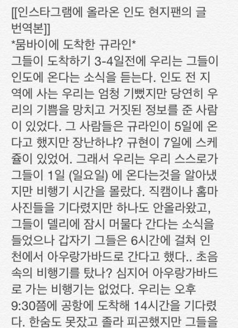 인도 현지 팬들이 규라인을 보기 위해서 공항에서 기다리지만