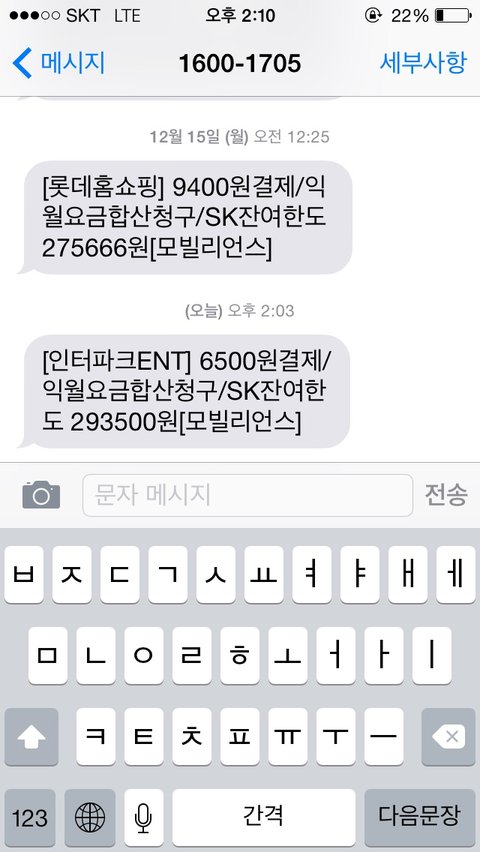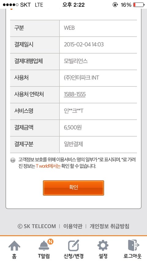 아래는 제가 사용중인 통신사 소액결제입니다.