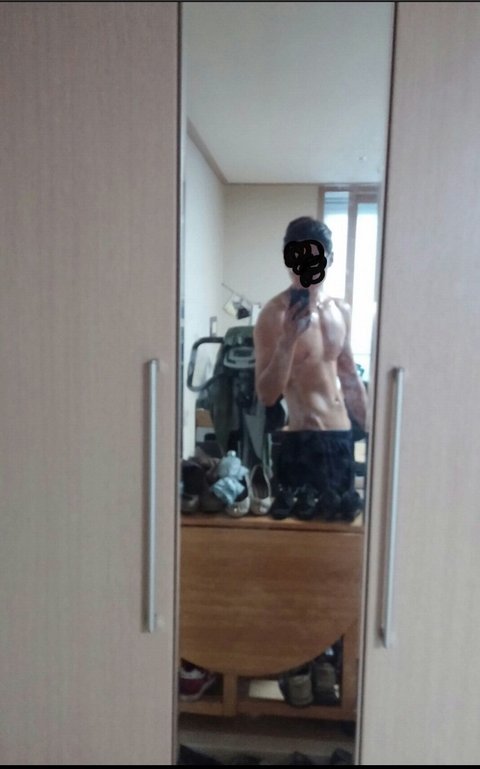 27살입니다 키 186에 몸무게는 72에서 73왔다갔다 합니다(더찐적도 빠진적도 없어요 안찌는 체질...)헬스한번도 안다니고 집에서 맨손 운동만했어오 각도빨 조명빨 조금 있네요..ㅋㄱ 운동중 찍은사진이에요