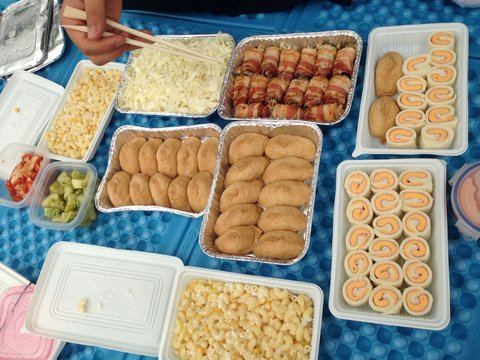 유부초밥, 베이컨말이, 햄치즈롤, 마카로니 등등