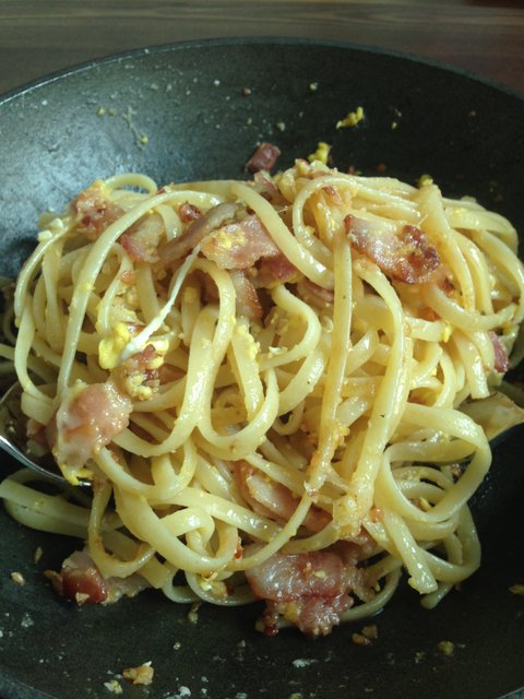 그리고 까르보나라에 쓴 면은 "링귀네"예요~~ 저거만들때 스파게티 면이 없어서 저걸로했는데,