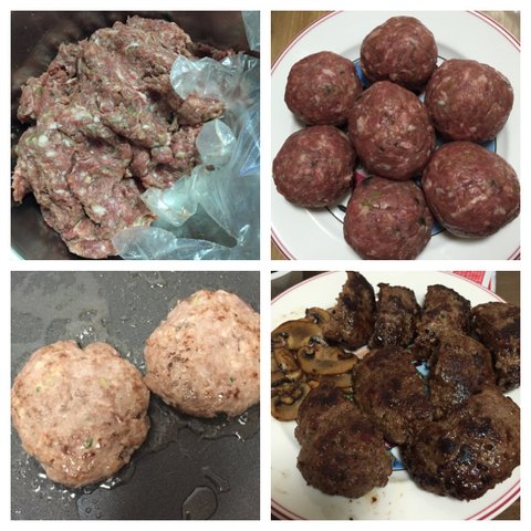 돼지고기 소고기 간것 반씩 넣고 주물주물.