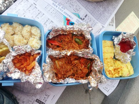 도시락을 싸보았어요.제육볶음( 매운맛과 안매운맛) 계란말이를 가지고 소주 한병과 맥주한병을 들고 경마장에서 말밥을 주고 왔네요..돈을 따서 회를 먹자라는 야심찬 계획ㅣ을 가졌으나..횟값 잃고나온 ㅜㅜ