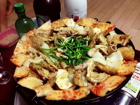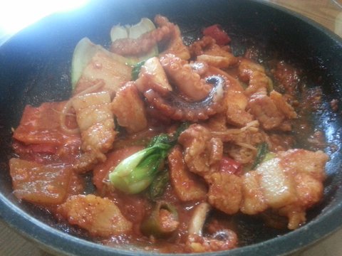 삼낙볶음 이네요 ㅎㅎ삼겹살과 낙지를 볶아볶아 소주한잔 했어오