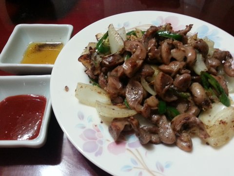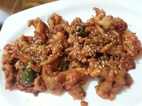 똥집볶음. 이것 역시 소주와 ..흐흐 이것을 만들면 집안에 연기가 너무많이 생겨 환기시키는데 어려움이 ㅜ
