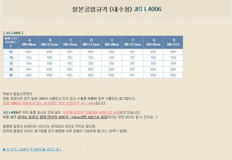 일본이랑 우리나라 속옷 사이즈 차이는 네이버에 검색해도 바로 나와용