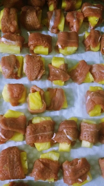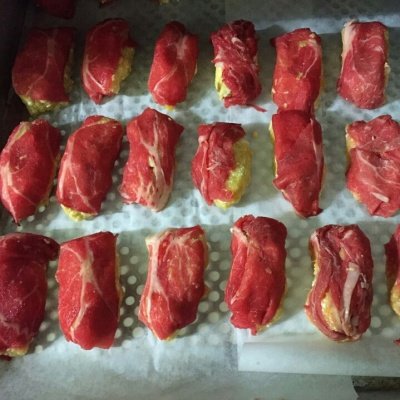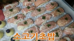 오리안심에 채소와 두부넣고 핫도그처럼 ,,