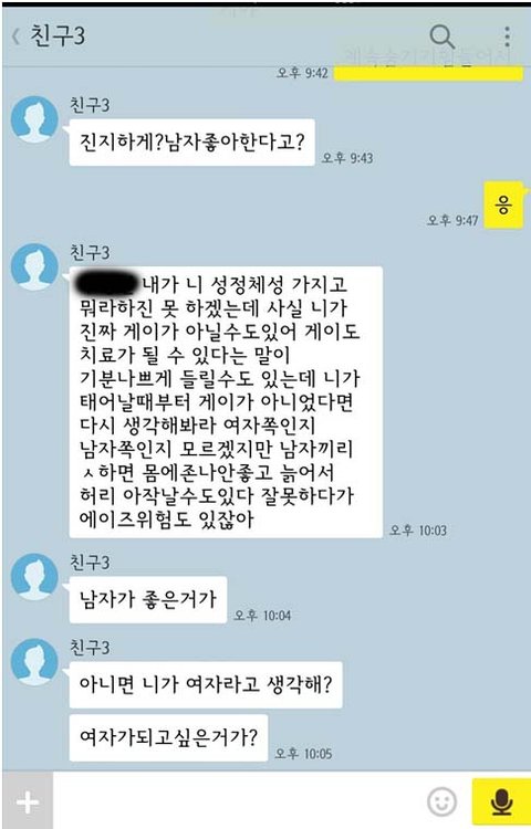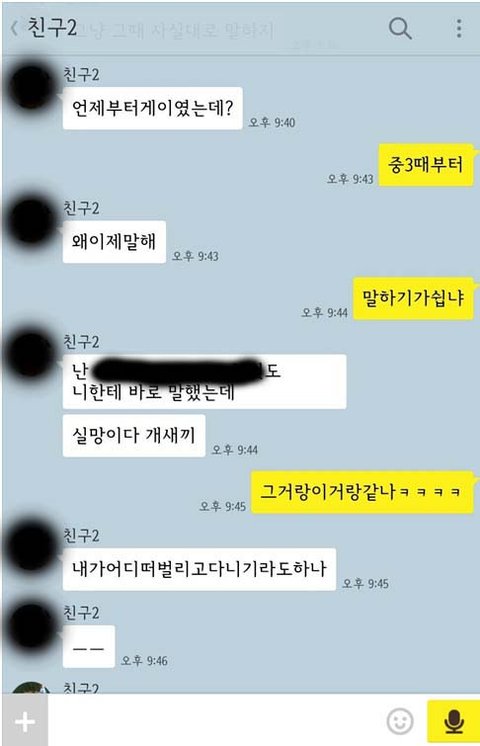 내가 게이라고 하면 그냥 욕하거나 씹을 줄 알았음