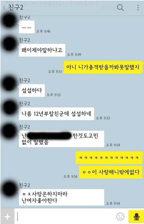 이 친구랑은 비밀없기로 한 사이라 이제까지 숨겨온게 섭섭하다고 함