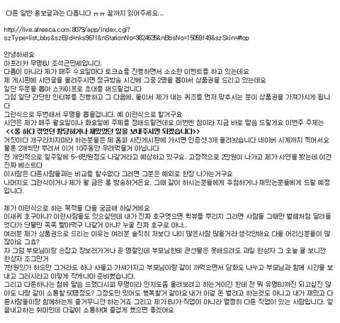 아프리카 BJ가 자기 게시판에 사연올리면 상품줌