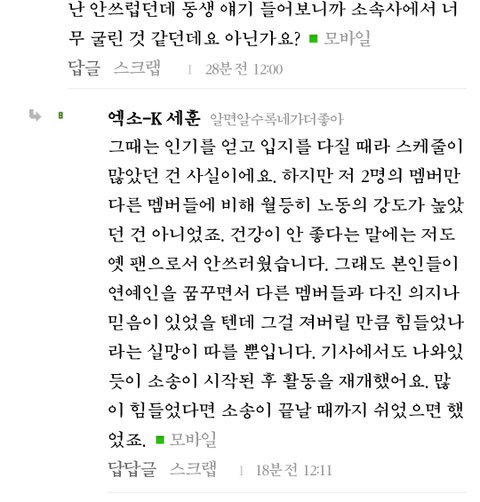 10명은 별로 안 힘들어서 아직 exo에 있는 중인가봄..