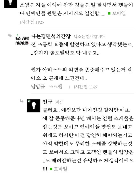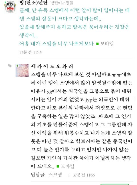 스엠 소속 연예인들&팬들 신경도 안쓰면서