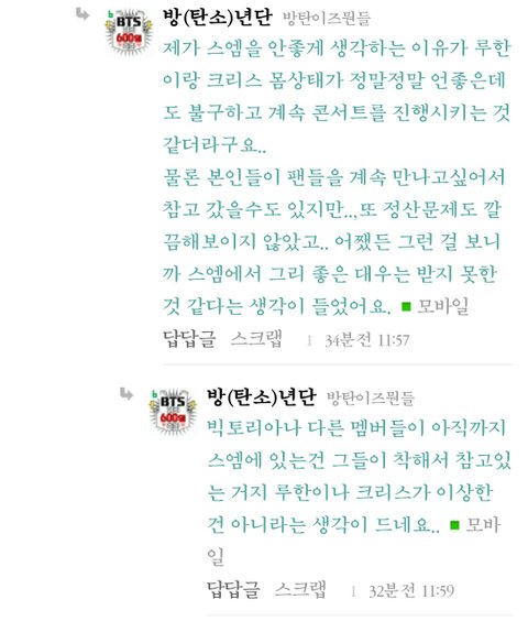 투둘기즈 아프대여..무조건 봐줘야됨.. 스엠이 잘못한듯