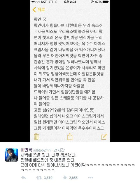 민혁이 트위터에 뭐가 막 구구절절 올라와있길래 봤더니