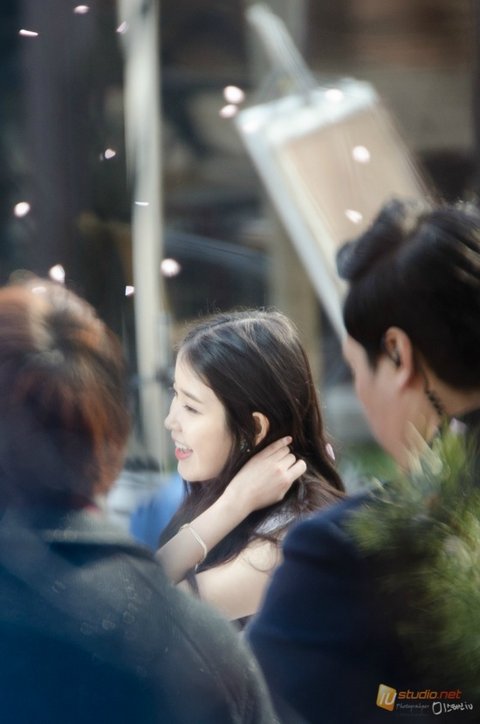 으으 이렇게 야외에서 벚꽃 날리며 촬영하는 지은이