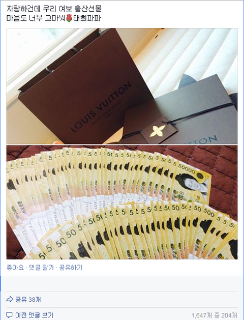 반대로 아내들은 남편들이 예비군이 다 끝나면 예비군졸업선물이나, 승진하고 오면 승진기념선물을 사진과 똑같은 방식으로 주는거에 대해선 어떻게 생각하세요?