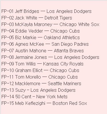 제프 브리지스, 저메인 존스, 50센트 등 지난 시즌 시구한 15명이 포함됐다