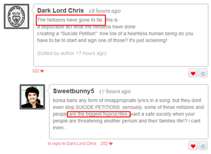 *한국 네티즌이 너무 심했다.