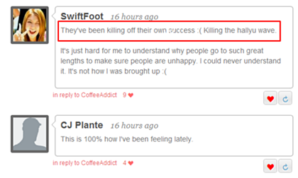 *그들은 그들 자신들이 지킬려고 하는 것을 죽이고 있다 :( 한류를 죽이고있다.