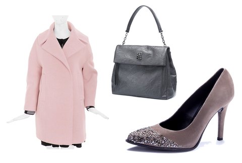 여성스러운 핑크코트에 그레이톤의 가방과 펌프스로