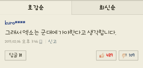 아..제가 네??화가나서 참을수가 없음. 아직도 전혀 관련없는 기사베플이 '그리고 엑소는 군대를 가야한다고 생각합니다'....?