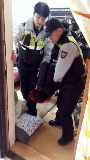 경찰이 집에 들어갔을 때 안방에는 80대 김아무개 할아버지가 이불을 덮고 반듯하게 누워 있었다. 기력이 없어서 식사를 제대로 챙겨 먹지 못한 그는 영양실조로 거의 죽음에 이른 빈사 상태였다. 경찰을 본 그는 눈을 껌뻑껌뻑거리다 손가락으로 수첩 한 권을 가리키는 것 외에 아무것도 하지 못했다. 경찰은 김 할아버지를 구조용 들것에 싣고 구급차로 옮겼다. 그는 화곡동 강서연세병원으로 이송돼 3일간 입원 치료를 받고 집으로 돌아왔다. 그가 손으로 가리킨 수첩 안에는 아들의 연락처가 적혀 있었다.