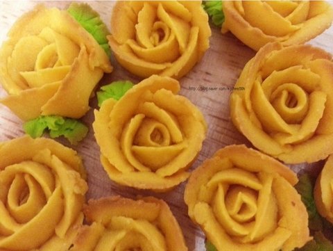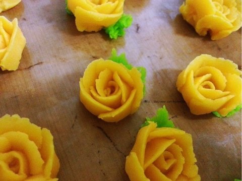 상투과자를 장미모양으로 짠 장미 상투과자