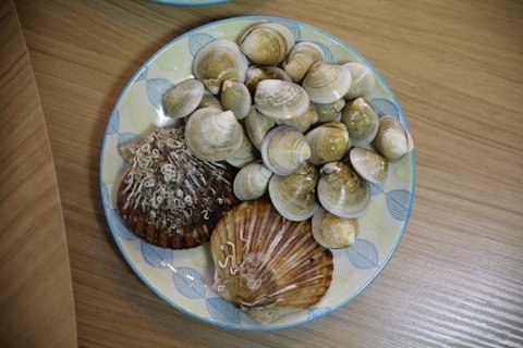 수세미로 깨끗히 씻어준 해산물들입니다.