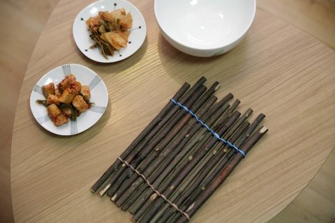 나뭇가지로 만든 냄비받침도 깔아주고요~