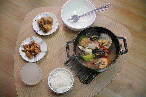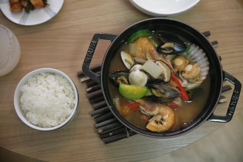 바로 지은 따끈한 밥에 해물뚝배기~~