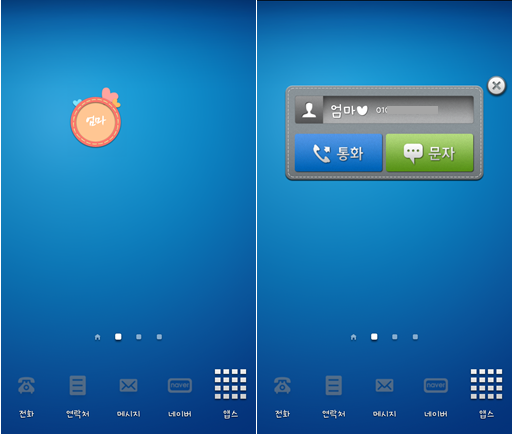 위젯을 클릭하면 통화와 문자를 빠르게 보낼 수 있어요.