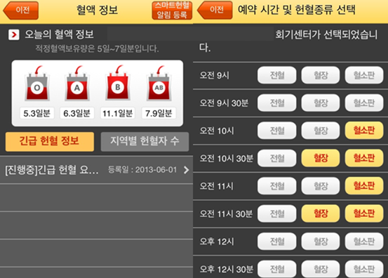스마트폰을 사용하는 헌혈자들을 위한 어플인데요.