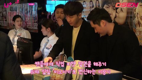 이승기가 영화 발권을 돕는 미소지기를 했다고함!(오늘의 연예는.....그저그랬지만..;_;)이승기는 참 후눈하구나..........