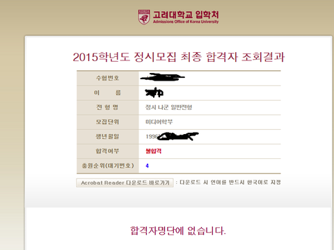 합격한거 올렸으면 더 좋았을텐데 추합이 계속 안나네,,,,ㅠㅠ 아무래도 떨어진듯 .