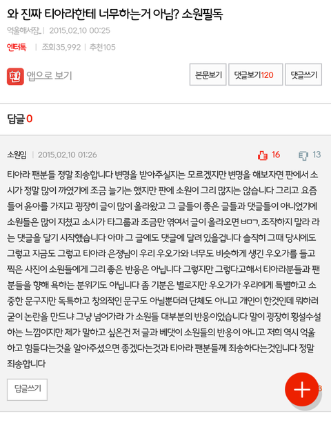 너네 그냥 이렇게 소원을 변호하는 댓글은 묻어버려서 안보이게한다음