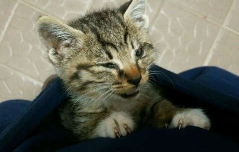 고양이들과 영역싸움을 한것인지 눈과 귀에서 피를 뚝뚝 흘리며