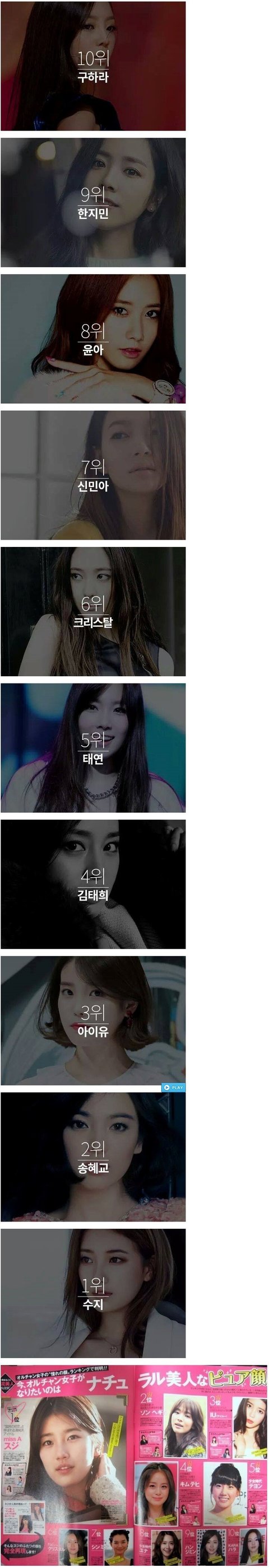 일본네티즌이 선정한 한국미녀 BEST10