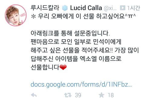 여기 주소들어가서 민석이가 받았으면 하는 선물 적어줘