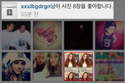 이건 모두가 아시다 싶이 유명한 gd님의 인스타그램임. 시기는 정확히 모르겠지만 위 사진을 제외시키고도 gd분이 수정이 사진 몇개에 좋아요를 눌러주심.