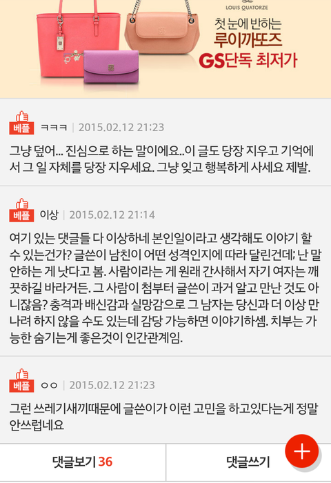 결시친 여자들만 보도록 비공개로 돌리든지,