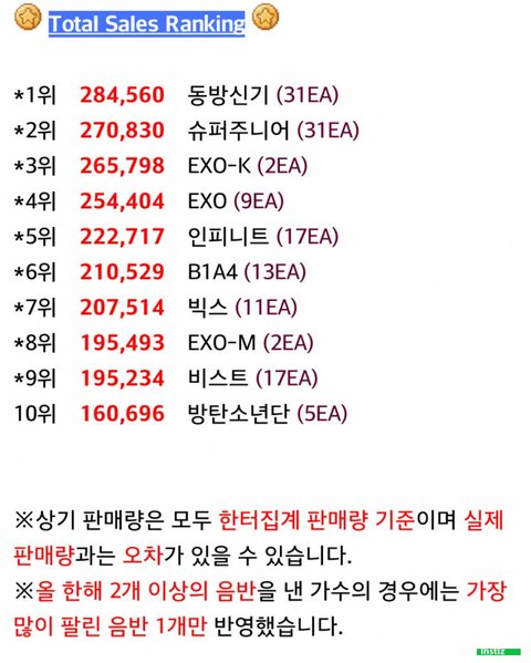 작년 음반판매량 10위안에 들었엉ㅋㅋㅋ