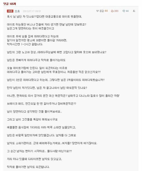 다툼이 생길때마다 여자의 잘잘못을 따지며