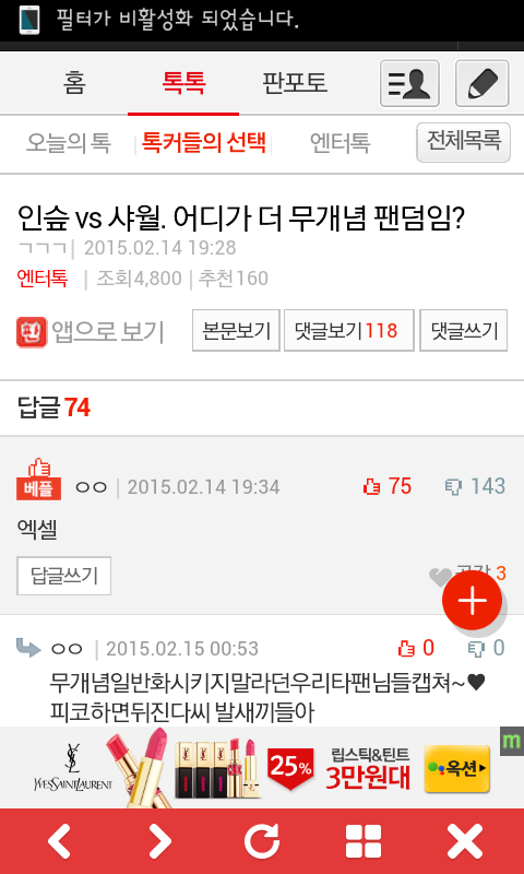 사실 무개념이 한분도없으신 다른팬덤분들이시지만 ㅎ~ 어떻게된일인지 추천수가 꽤 보여요! 하하 일반화시킨다고 욕할거죠? 네네 ㅎㅎ~