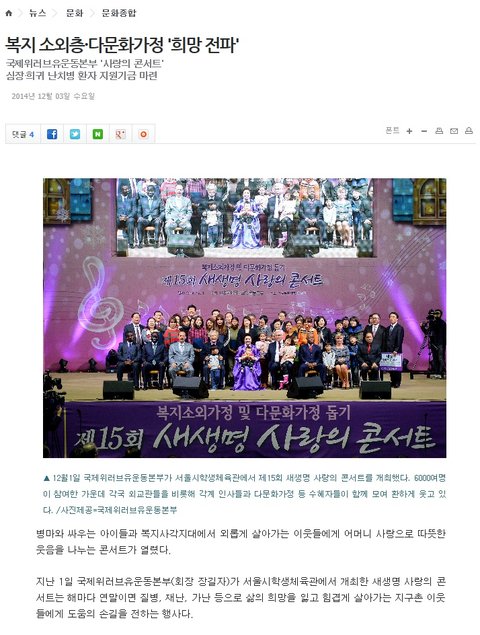 복지소외층·다문화가정 ♣ 장길자(iwf회장) 국제위러브유운동본부 새생명 사랑의 콘서트