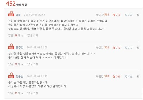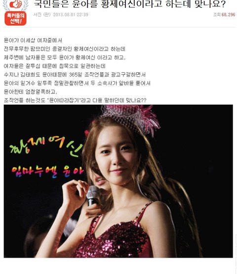 윤아 진성팬입니다. 다름 사이트 다 돌아다니면서 수지 김태희 까고 황제여신 거리면서 이상한 합성사