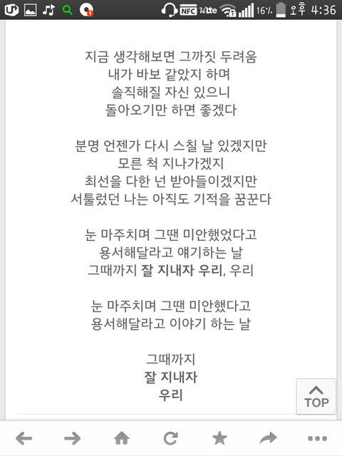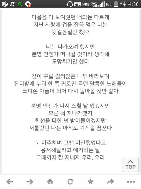 맞음???내 친구 전남친이랑 헤어지고 붙잡을걸 하면서 이노래만 주구장창 듣던데